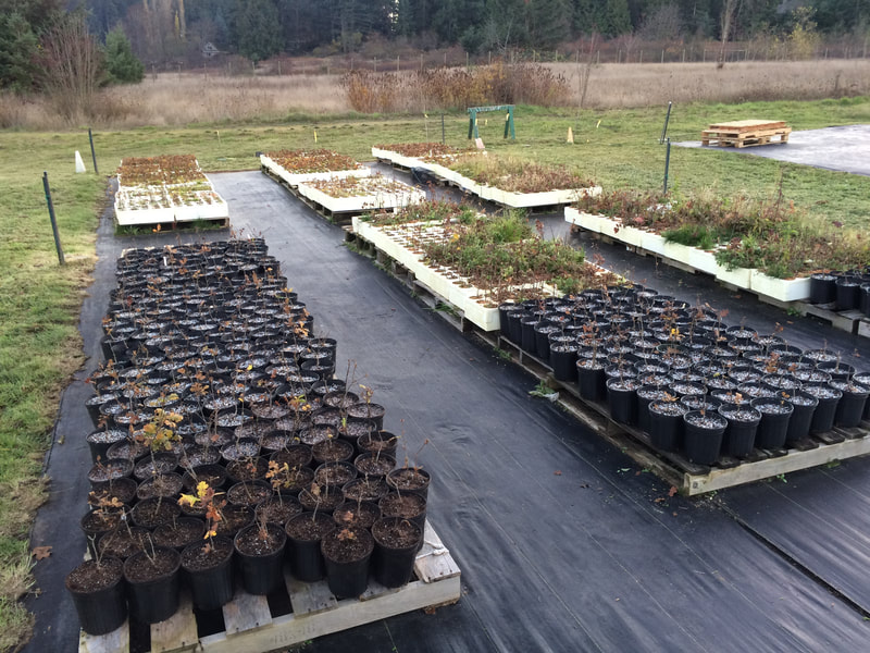 Our nursery location in Central Saanich tends to receive the most snow when it does snow in the region, as you can see in the photo from late February. The good thing is the snow insulated the trees and a gradual melt was not a bad thing from that perspective.