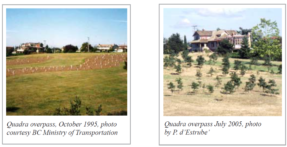 Pierre d’Estrube, President GOMPS, “The Quadra Overpass Garry Oak Plantation” Garry Oak Meadow Preservation Society Newsletter, Volume 13, Number 1, Page 5, June 2006.