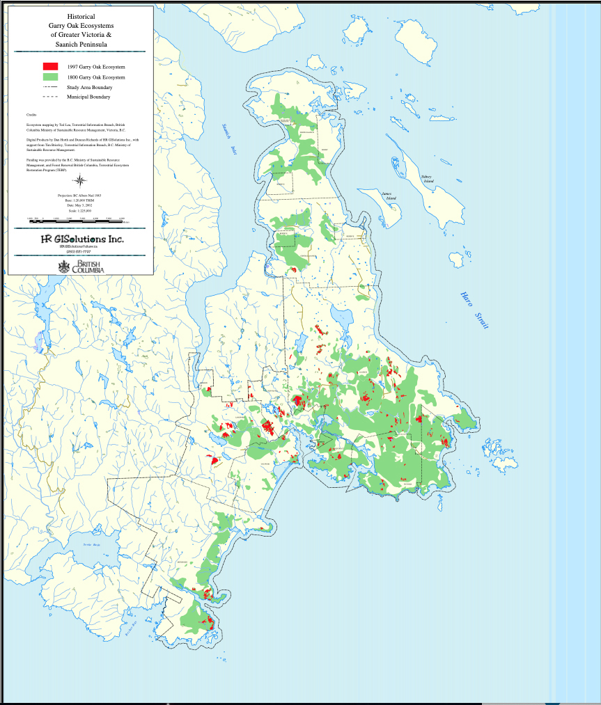 The Garry Oak Ecosystems Recovery Team website offers additional maps of the distribution of Garry oak ecosystems on Central Vancouver Island and the Gulf Islands.